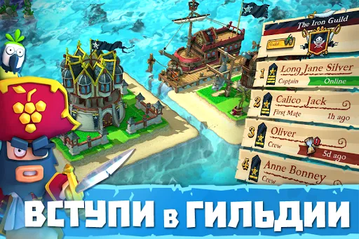 Сердце геймплея — ваш остров, который вы развиваете шаг за шагом. Начинаете с базовых построек: верфь для кораблей, таверну для найма пиратов и склады для ресурсов вроде дерева, камня и рома. Но по мере прогресса разблокируете продвинутые сооружения — от кузниц для апгрейда пушек до маяков, которые раскрывают карту. Каждый элемент базы влияет на вашу мощь: укрепленные стены отбивают атаки, а фермы обеспечивают еду для растущей армии. Интересный нюанс — 360-градусный обзор острова позволяет вращать камеру, планируя оборону с любого ракурса, что добавляет глубины тактике. Без грамотного менеджмента ресурсов вы рискуете стать лёгкой добычей для альянсов.