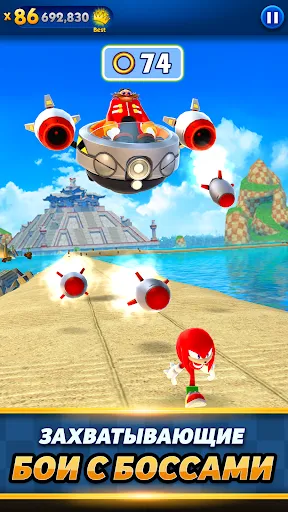 Sonic Dash: Endless Run - первая официальная бесконечная бегалка с Ежом Соником в главной роли. Играйте за Соника, бегите на максимальной скорости, соревнуйтесь с противниками и открывайте новые маршруты. Проведите пальцем по экрану, чтобы направлять героя вверх или вниз, уклоняясь от препятствий в этой бесплатной, быстрой и сумасшедшей игре. СОНИК... Беги как можно быстрее вместе со звездами игр про Ежа Соника! Как далеко тебе удастся пробежать вместе с этим быстрым и классным ежиком?